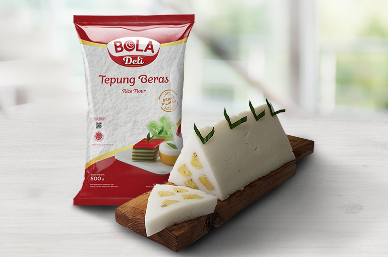 100 g BOLA Deli Tepung Beras 15 g BOLA Deli Tepung Maizena 600 ml santan 2 lbr daun pandan 75 g gula pasir 1/2 sdt garam 2 bh pisang tanduk